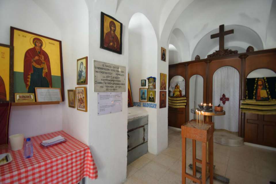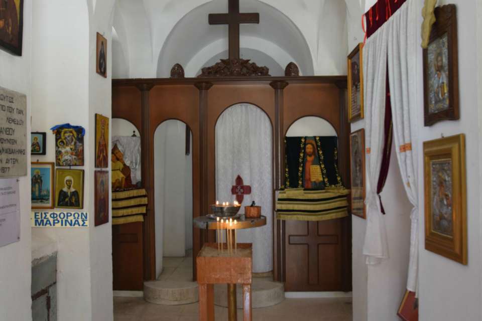 Γύρω στα 1500 μέτρα νότια του χωριού Πύργος , σε μια έκταση γης 33 ων σκαλών και ανάμεσα σε 300 χαρουπιές, βρίσκεται το μικρό πετρόκτιστο εξωκλήσι της Αγίας Μαρίνας. Το μοναδικό κομμάτι που σωζόταν, ήταν κατάλοιπα από το ιερό του μικρού ναού. Το 1951 οι κάτοικοι της κοινότητας, με στόχο την αναστήλωση του ξωκλησιού έκαναν εράνους και φρόντισαν για την αναπαλαίωσή του. Εσωτερικά είναι επίπεδο εκκλησάκι με το απλό, ξύλινο, εικονοστάσι του. Είναι χωρητικότητας περίπου 30- 40 ατόμων. Υπάρχουν τέσσερις φορητές εικόνες. Από δεξιά η εικόνα του Χριστού και πιο πέρα η εικόνα του Αγίου Ιωάννη του Προδρόμου. Από αριστερά η εικόνα της Παναγίας και δίπλα ακριβώς η εικόνα του Αγίου Ιωάννη του Θεολόγου. Η ασημένια (από δωρεά ) εικόνα της Αγίας Μαρίνας, φυλάγεται στην κεντρική εκκλησία του χωριού την Παναγία την Πυργώτισσα . Είναι τοποθετημένη σε ειδικό προσκυνητάρι ακριβώς δίπλα από το προσκυνητάρι της Κοιμήσεως της Θεοτόκου. Κατά την ημέρα που γιορτάζεται, στις 17 Ιουλίου η ασημένια εικόνα της Αγίας Μαρίνας, μεταφέρεται στο μικρό εξωκλήσι για την λιτάνευση. Αξίζει ν' αναφέρουμε ότι στις 17 Ιουλίου, όπου γιορτάζεται η Αγία Μαρίνα, γίνεται μεγάλη πανήγυρις στο μικρό ξωκλήσι. Εκατοντάδες πιστοί προσέρχονται την ημέρα αυτή, για να πάρουν το τάμα τους και ευλαβικά να προσκυνήσουν την Αγία Μαρίνα.